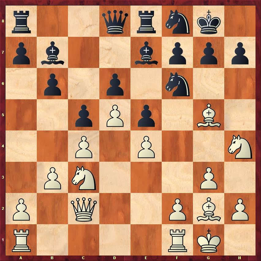 13...Bh6 14. Ng3 c5 15. h4 Bf4 16. h5 g5?! Black leaves a hole on f5 and as both of White's knights are ready to hop there this isn't a great idea for Black.